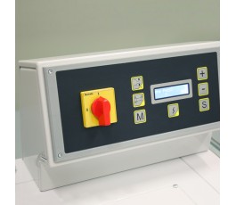 - Panel de mando con pantalla LCD alfanumérica, microprocesador de 16 bit y relés de estado sólido, que permiten un control simple y muy preciso de todas las operaciones en curso, como: