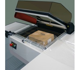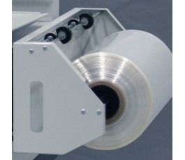 Plato portaproducto móvil y soltado del soporte bobina, para adaptar más fácilmente el film a las dimensiones del paquete